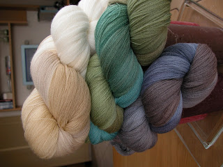 I already have some sockyarn, Lorna's Laces Shepherd Sock in a ( don't laugh) lightgreen.